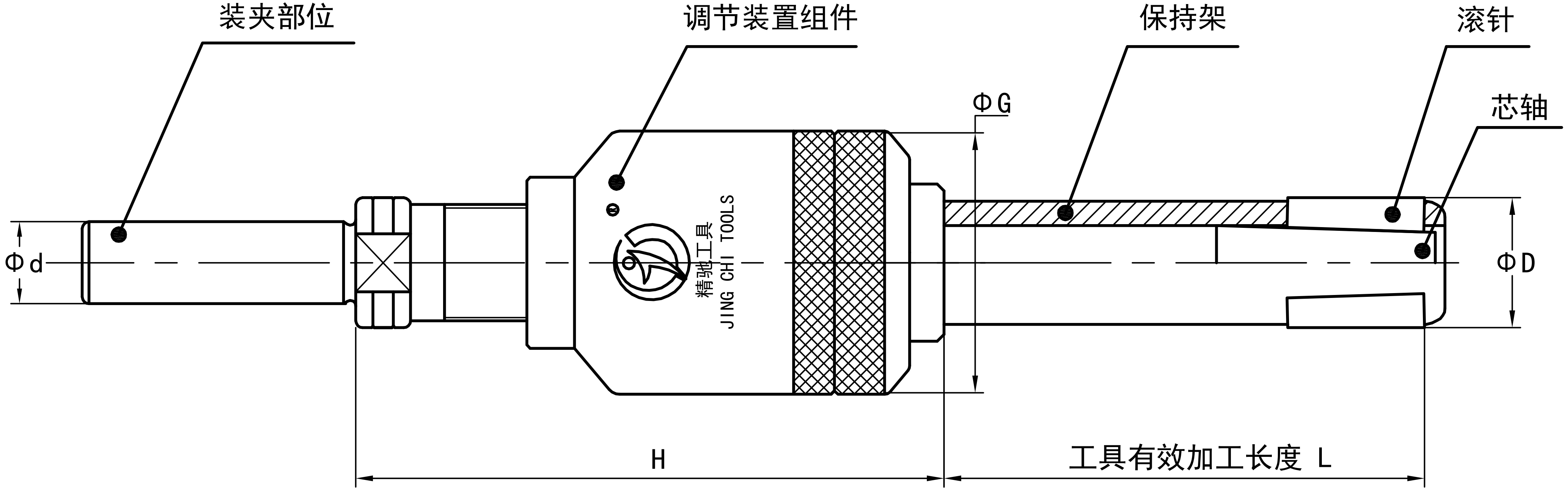 加工孔徑Φ40以上的滾壓刀,由于調(diào)節(jié)組件的外徑比加工孔徑小,可通過加長柄部尺寸的方法增加加工長度。