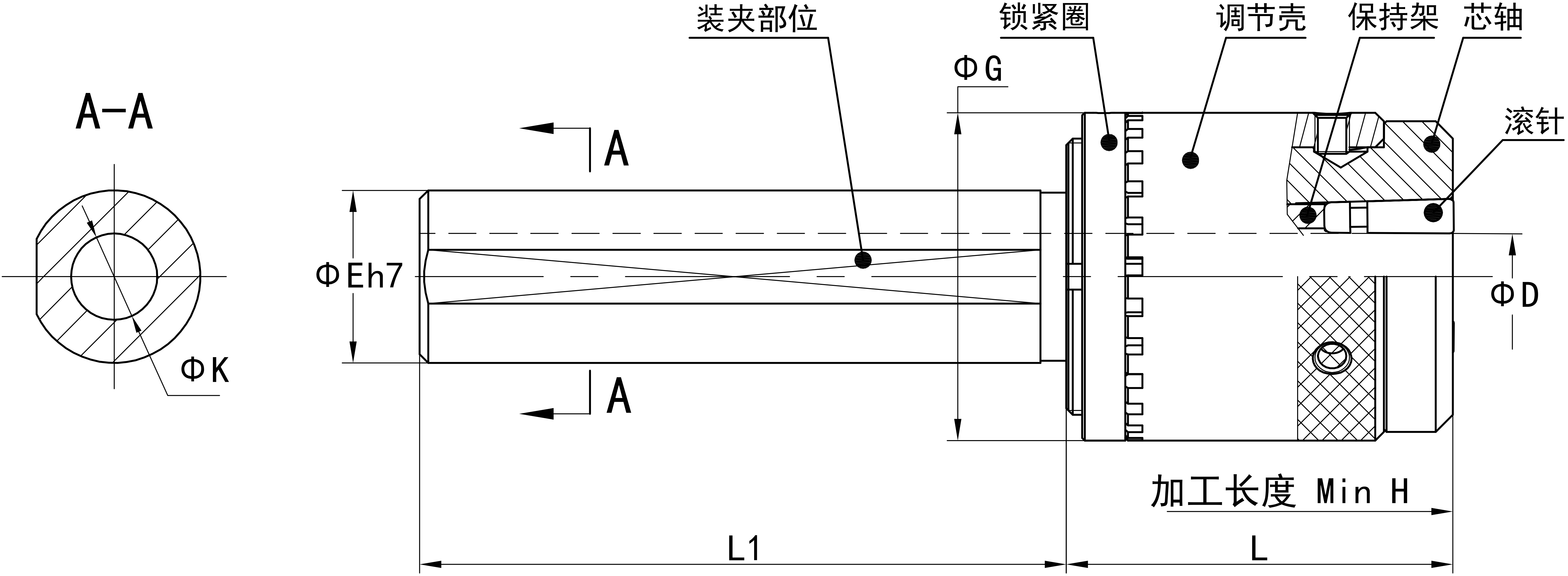 JC-WS系列工具比較適合安裝在有長度限制的機床上,加工直徑Φ3-14mm。當裝夾部柄徑采用足夠直徑時,由于柄部內孔大于滾壓尺寸,加工長度將無限制。